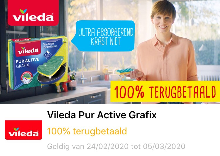 100% terugbetaald bij aankoop van een Vileda Pur Active Grafix superabsorberende spons (2-pack)