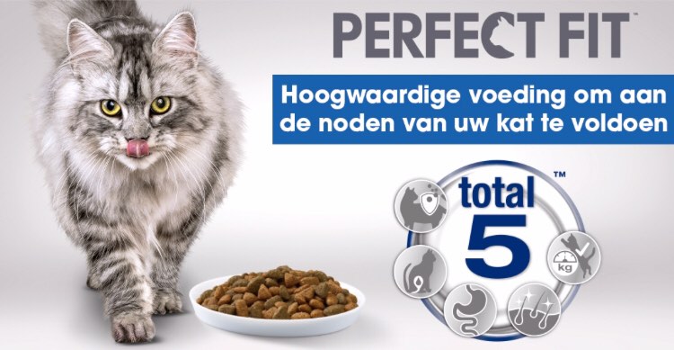 Dankzij de TOTAL 5-formule weet je het zeker: met PERFECT FIT™ smult jouw kat van kwaliteitsvolle voeding. Ze werd ontwikkeld door dierenartsen en voedingsdeskundigen in het WALTHAM-centrum en combineert vijf voordelen die aan de 5 meest voorkomende behoeften van katten voldoet, ongeacht hun leeftijd of levensstijl: